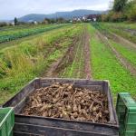 Am 6.10. waren die Petersilienwurzeln dran. Die sind ein Zwischending aus Sellerie und Pastinake und das Grün sieht eben aus wie Petersilie. Ganz so aromatisch schmeckt es aber leider nicht - wir (2 Mitglieder) haben das getestet! Die Wurzeln haben wir zunächst mit dem Spaten gelockert, dann aus der Erde gezogen, das Grün abgemacht und das meiste von der Erde entfernt. Übrigens wurden die auf dem Hof schon länger nicht mehr angebaut. Da sie aber einen guten Ertrag bringen, dürfen wir uns nun öfter auf sie freuen! Auch von dieser Aktion ein paar Fotos unten in der Gallerie.